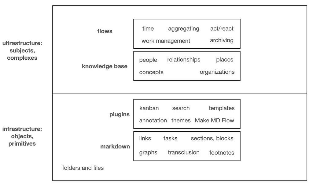 Some of what you will learn includes a condensed history of notetaking, and its transition with the advent of digital notetaking, and the practical realization of notetaker’s goals in Folio. What are the objects, subjects, and relationships that comprise Folio’s infrastructure in Obsidian? Why is our experience of time — in the succession of days, weeks, months, and years — central to Folio’s flow? How does Folio support a knowledge base, and the accumulation and application of nodes in a knowledge graph? How does Folio support project-based work? How will Folio accommodate the inevitable transition to a multi-user generation of Obsidian?