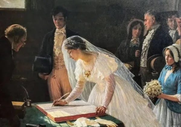 Coverture was a legal doctrine in English common law under which a married woman’s legal existence was considered to be merged with that of her husband. Upon marriage, she had no independent legal existence of her own, in keeping with society’s expectation that her husband was to provide for and protect her. Under coverture a woman became a feme covert, whose legal rights and obligations were mostly subsumed by those of her husband. An unmarried woman, or feme sole, retained the right to own property and make contracts in her own name.