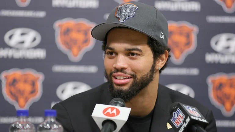 Take the No. 1 draft pick, Caleb Williams, the U.S.C. quarterback chosen — to the surprise of almost no one — by the Chicago Bears. Mr. Williams dressed for his big night in a sophisticated dark blue, double-breasted zippered suit by Chrome Hearts, worn over a darker blue T-shirt. It was a sleek tone-on-tone look that was only improved when he donned his new team’s logo snapback.